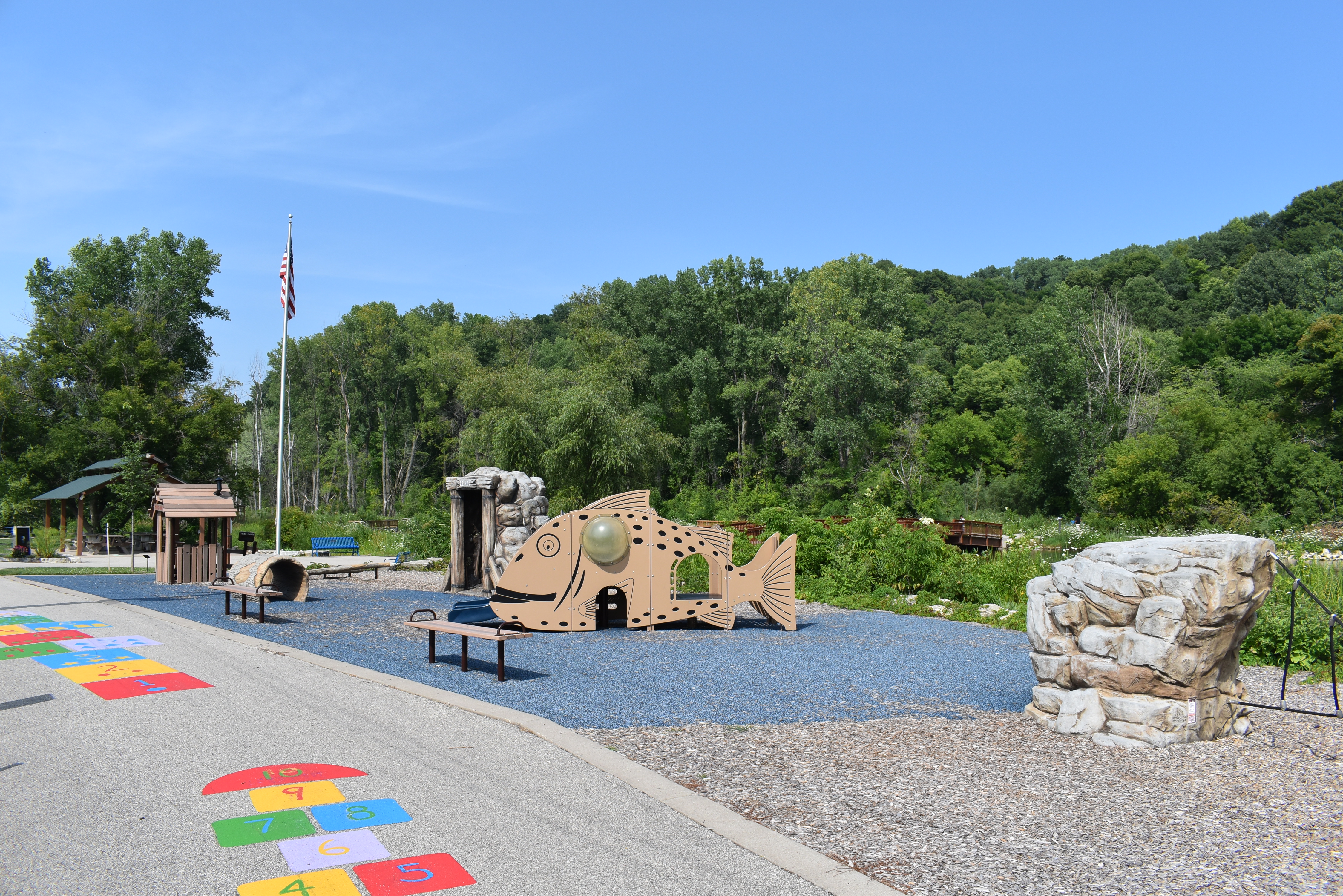 Chad Erickson Memorial Park was created as a tribute to Chad Erickson, a young outdoor enthusiast and skilled fisherman who died in 1995 at age 15. The park also contains a favorite place of Chad’s, the Vietnam Veterans Pond. The pond, which has been dredged, aerated and stocked with fish, has wheelchair accessible platforms for fishing. The 22.5 acre park and playground are also wheelchair accessible. The redevelopment of the park has been a community project and is intended to provide pleasure and discovery for everyone. It is a place for remembrance and celebration.