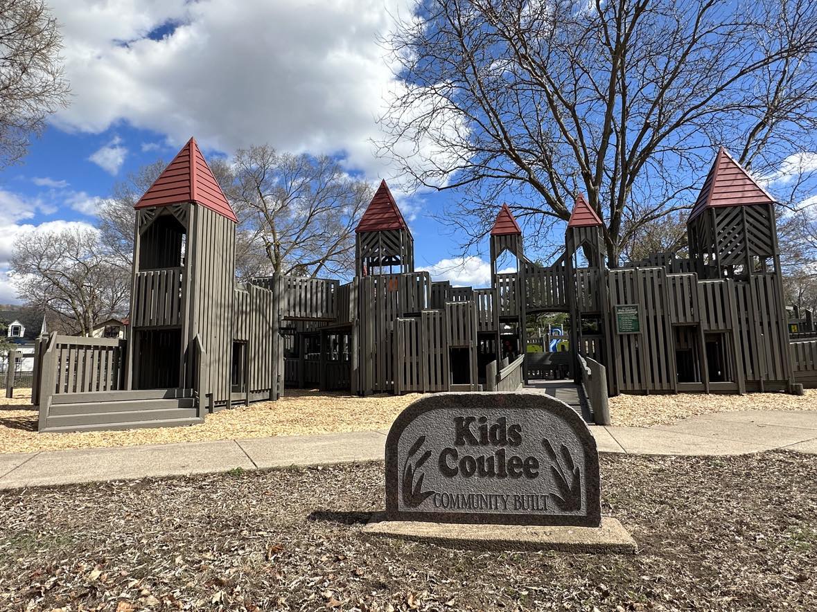 Kid’s Coulee was built by over 3,700 volunteers in September of 1994. It is a 20,000 square foot wooden playscape which includes a variety of play structures and an amphitheater.